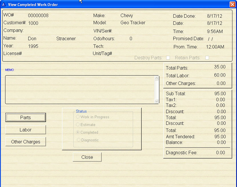 See the parts and labor