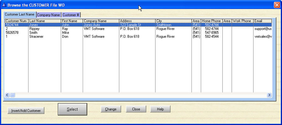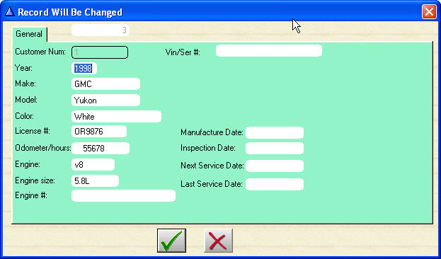 A customer may have several vehicles on their file. You can change the auto or machine you are working on with the click of the mouse.