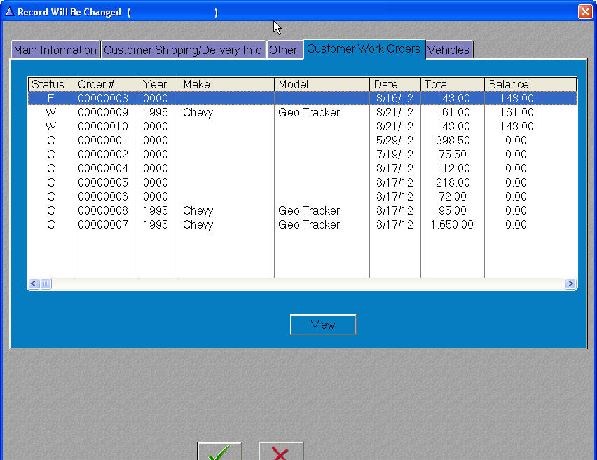 Customer form page four shows all work orders and estimates that the customer.